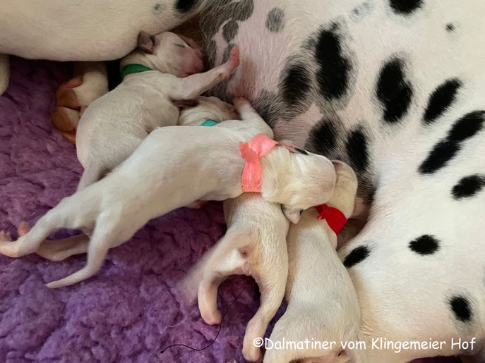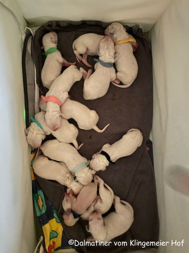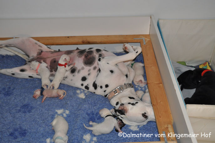 Ausdrücklich bedanken möchte ich mich bei unserer Tierärztin, die, wie in allen vorangegangenen Würfen, Tag und Nacht bereitstand, um uns mit Rat und Tat zu unterstützen. Das beruhigt meine Züchternerven schon sehr! Zumal ich weiß, dass in ihrer gut ausgestatteten Praxis auch jederzeit ein Kaiserschnitt möglich wäre. Das haben wir in 2 der vergangenen 15 Würfe auch tatsächlich in Anspruch nehmen müssen und konnten durch das Geschick der Tierärztin und ihres Teams jeweils alle Welpen und die Mutterhündin retten. Das ist keineswegs selbstverständlich!