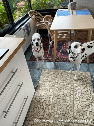 Mira und Gemma warten auf das Hähnchen.