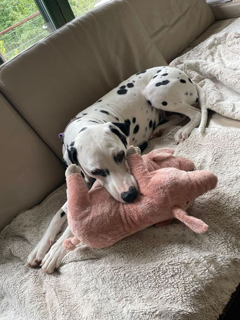 Mira geht es sehr gut, sie ist vielleicht etwas ruhiger als sonst und schläft mehr. Nach dem Frühstück legt sie sich gerne noch einmal auf´s Öhrchen und genießt die Ruhe.