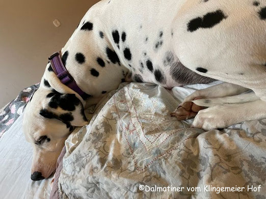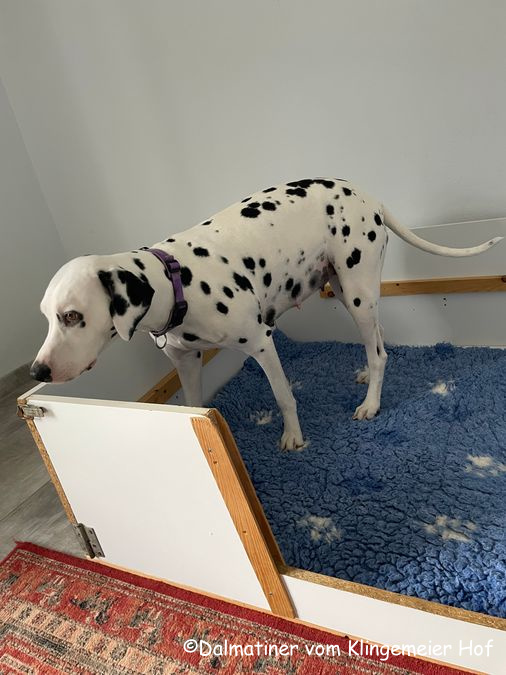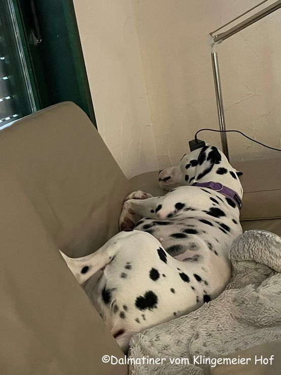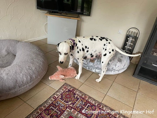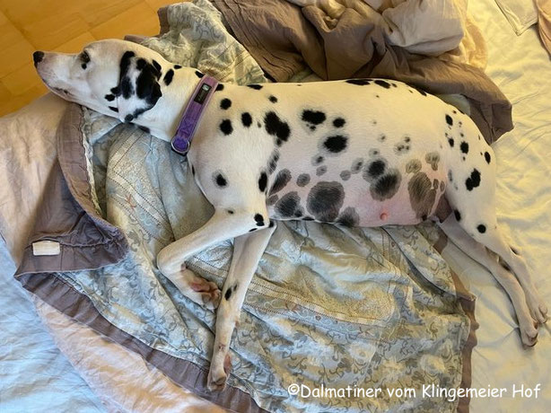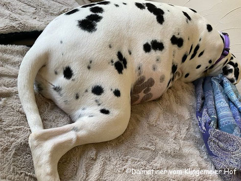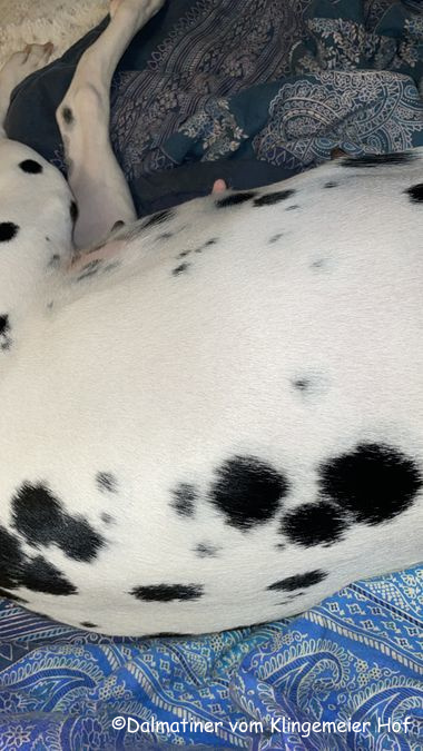 Der Bauch sieht mittlerweile so aus als hätte Mira einen Baseball verschluckt, d.h. die Welpen sind definitiv in Landeposition gewandert.